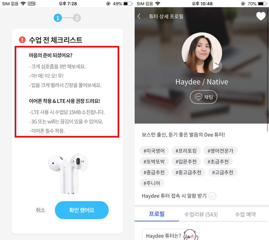 영어회화 어플 튜터링 레벨 테스트 후기!