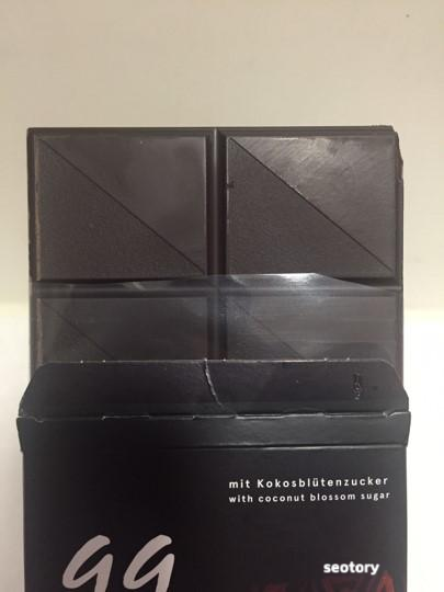 노비보다는 덜하지만 초반에 떫고 신맛이 강하며 아주 살짝 쌉싸름하다. 초콜릿이 네 개 중 두께가 제일 두꺼운 편이라 살짝 먹기 힘든데 그래도 입 안에서 잘 녹고 뒷맛이 거의 남지 않아서 깔끔하다. 떫고 신맛만 뺀다면 네 가지 중 가장 일반 초콜릿에 가까운 향과 식감을 지니고 있다.