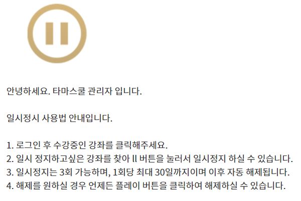 일시정지의 경우 총 3회 이용 가능하며, 1회당 최대 30일까지 이용 가능하다. 이 제도를 잘 활용할 수 있는 사람은 굳이 패키지 강의를 신청하지 않아도 된다.