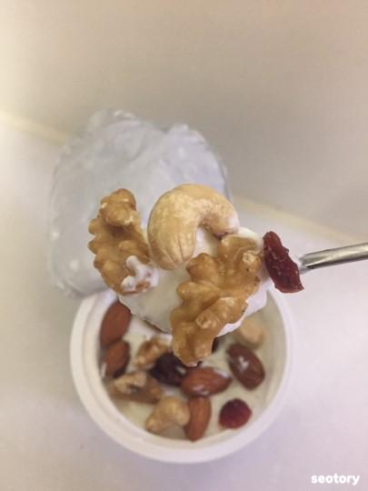 이번에도 역시 견과류를 토핑으로 얹어서 먹었는데 이렇게 먹으니 신 맛이 아예 안 느껴질 정도였다.