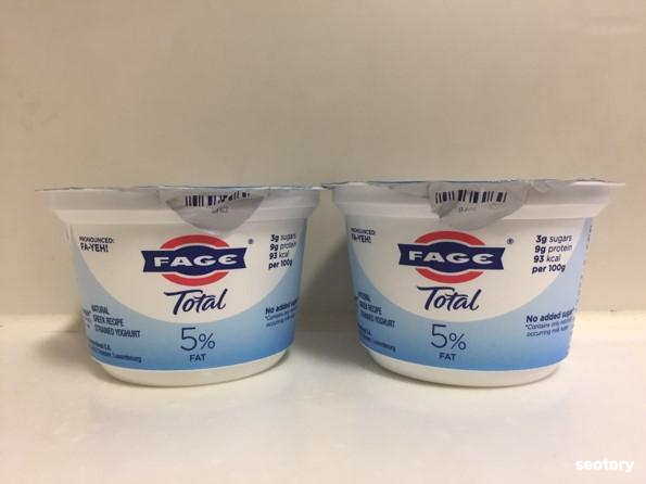 요즘(YOZM) 그릭요거트는 완전 꾸덕한 크림치즈 같았던 반면 파예(FAGE) 그릭요거트 플레인은 누구나 다 아는 전형적인 요거트 제형과 맛을 지니고 있다. 크림이 들어가서 그런지 확실히 부드럽고 신 맛도 훨씬 덜했다.